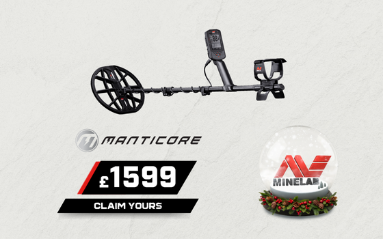 Take a closer look at the MANTICORE detector from Minelab. Featuring Multi-IQ+ technology, enhanced discrimination, and waterproof build, it’s designed for those ready to uncover what lies beneath. Now with a free M15 coil during May.